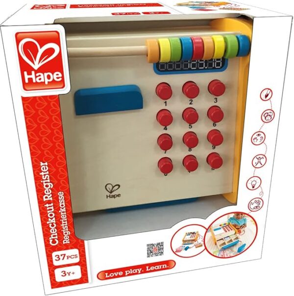 Juego de simulación de caja registradora de madera para niños.