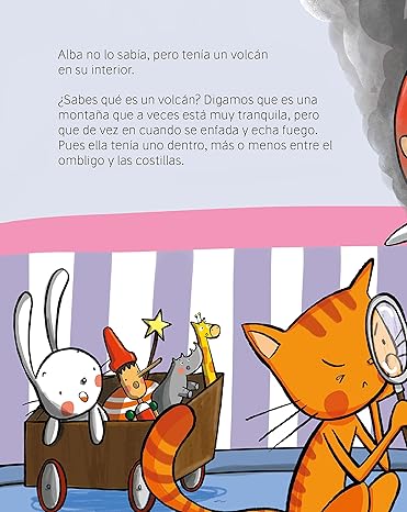 Alba no lo sabía, pero tiene un volcán en su interior, más o menos entre el ombligo y las costillas. A veces, el volcán se enciende y explota. Entonces el fuego lo quema todo y Alba sufre y se asusta, todo a la vez. Pero una noche una pequeña hada le explica qué puede hacer cuando se enfada, un truco que la llevará a descubrir sensaciones inesperadas.